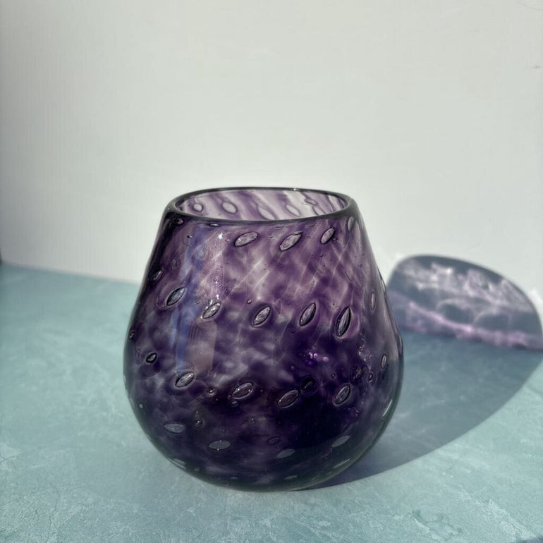 A balance of tradition and artistry, this wine glass is handblown in Charlottesville, VA with soft, colored accents woven into its form. It’s a timeless vessel, perfect for both everyday enjoyment and celebratory occasions. Gently hand-wash only. Suitable for cold drinks. Not dishwasher/microwave safe. Avoid extreme temperature changes.