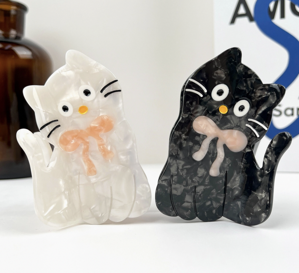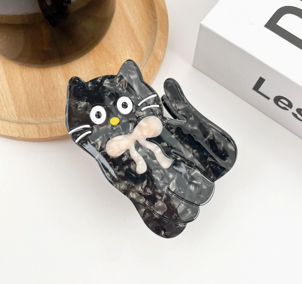Cat with Bow Claw Clip