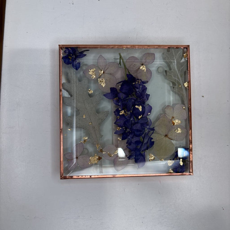 Pressed Flower Coaster: Dusty Miller/Larkspur/Gold