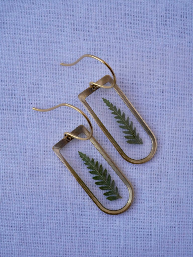 Tiny cathedral window shaped brass frames hang from 24k gold plated ear hooks. Available in your choice of real preserved botanical.
