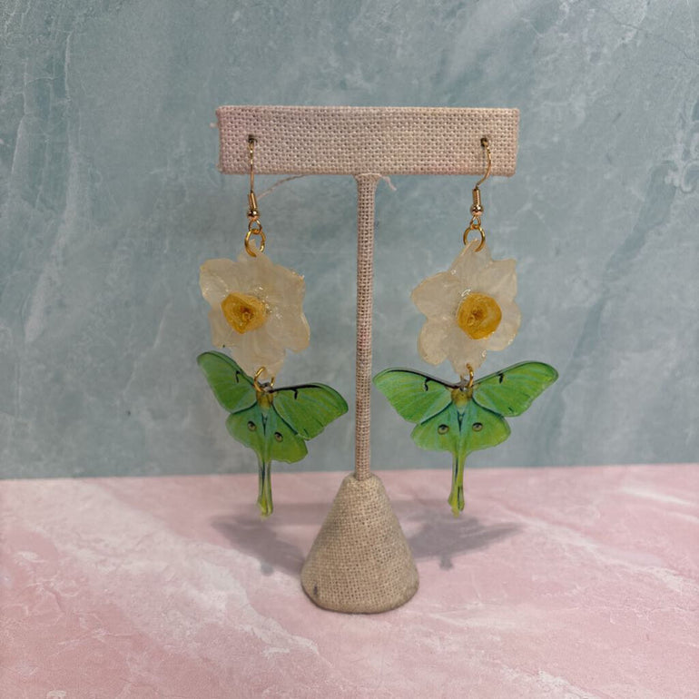 Daffodil & Luna Moth Charm Earrings