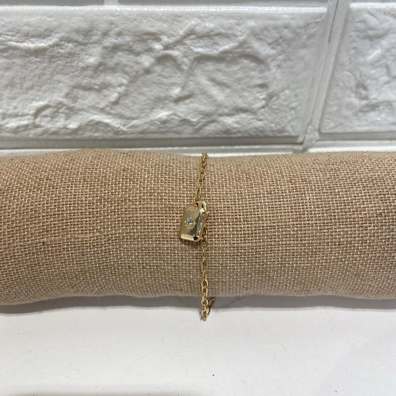 Gold Chain Anklet: Rectangle Rhinestone Star Charm