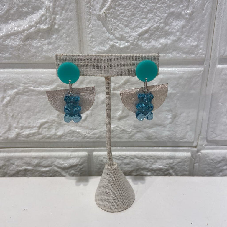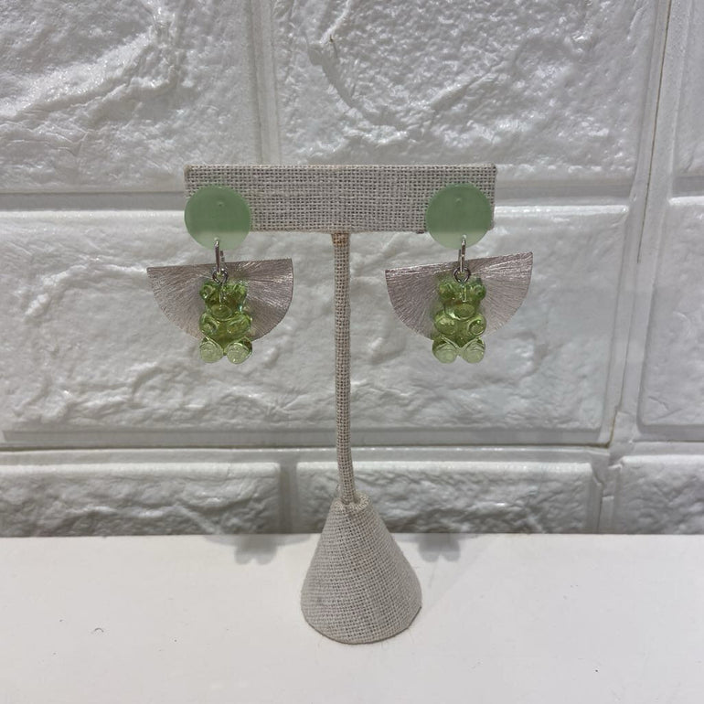 Resin gummy bears with silver semi-circle dangles.