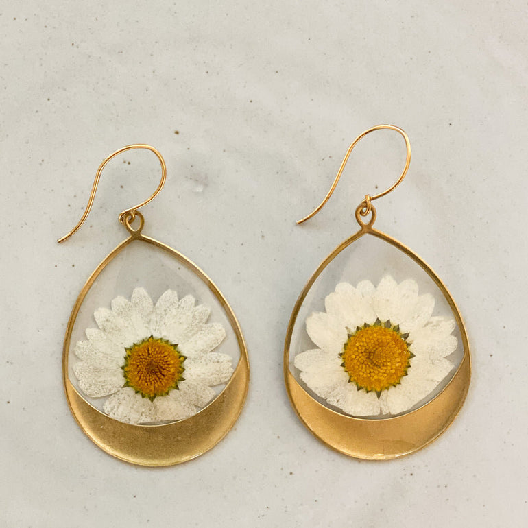 A larger, more oval version of our horizon hoops. The half daisy in these earrings reminds us that with all that is unsure, the rising of the sun is constant and sure.