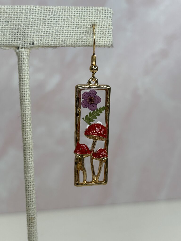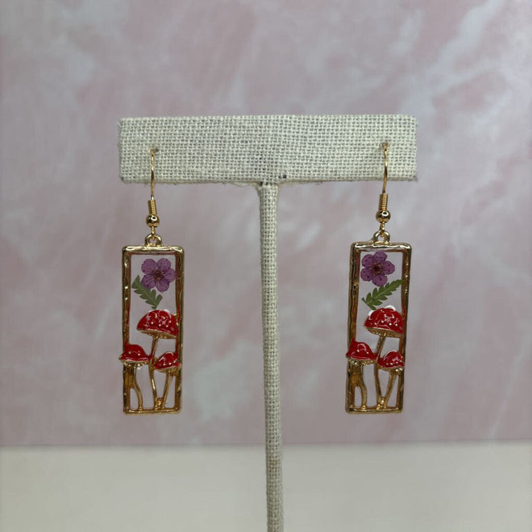 Mushroom Frame Mini Daisy And Fern Earrings