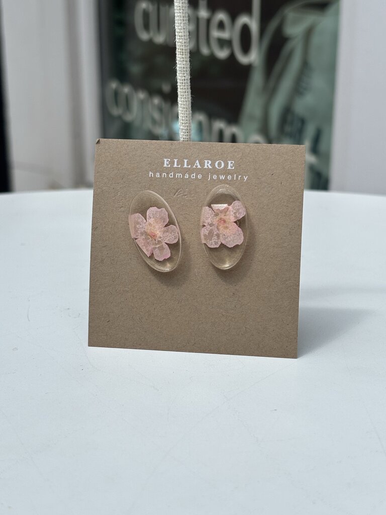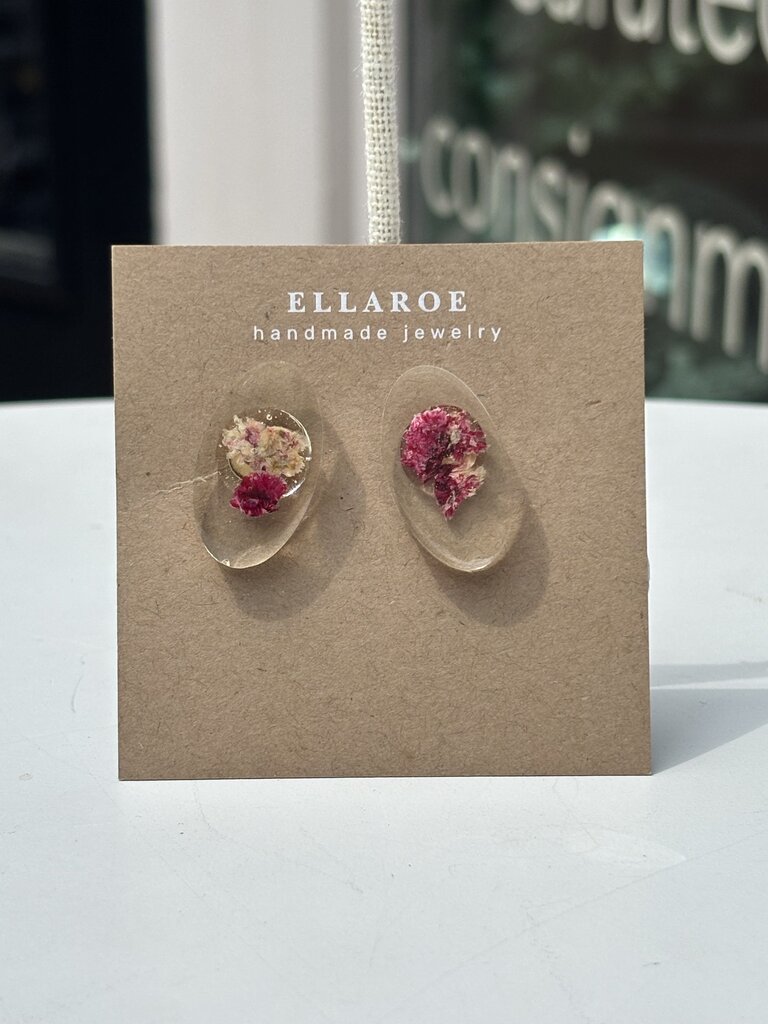 Handmade earrings using local florals dried and preserved in epoxy resin. Due to the natural variation of flowers, each piece will be unique and variation should be expected.