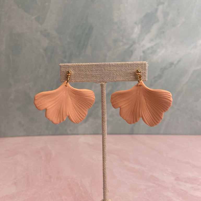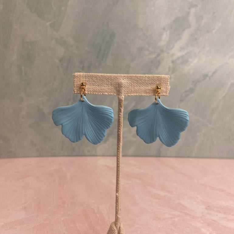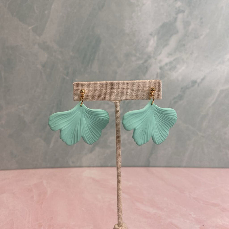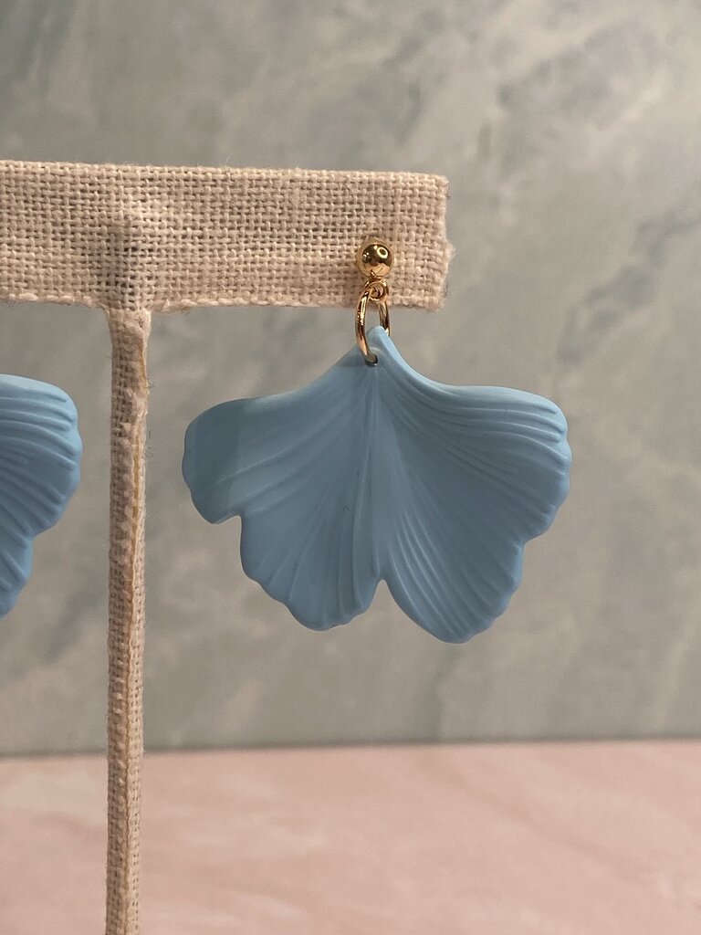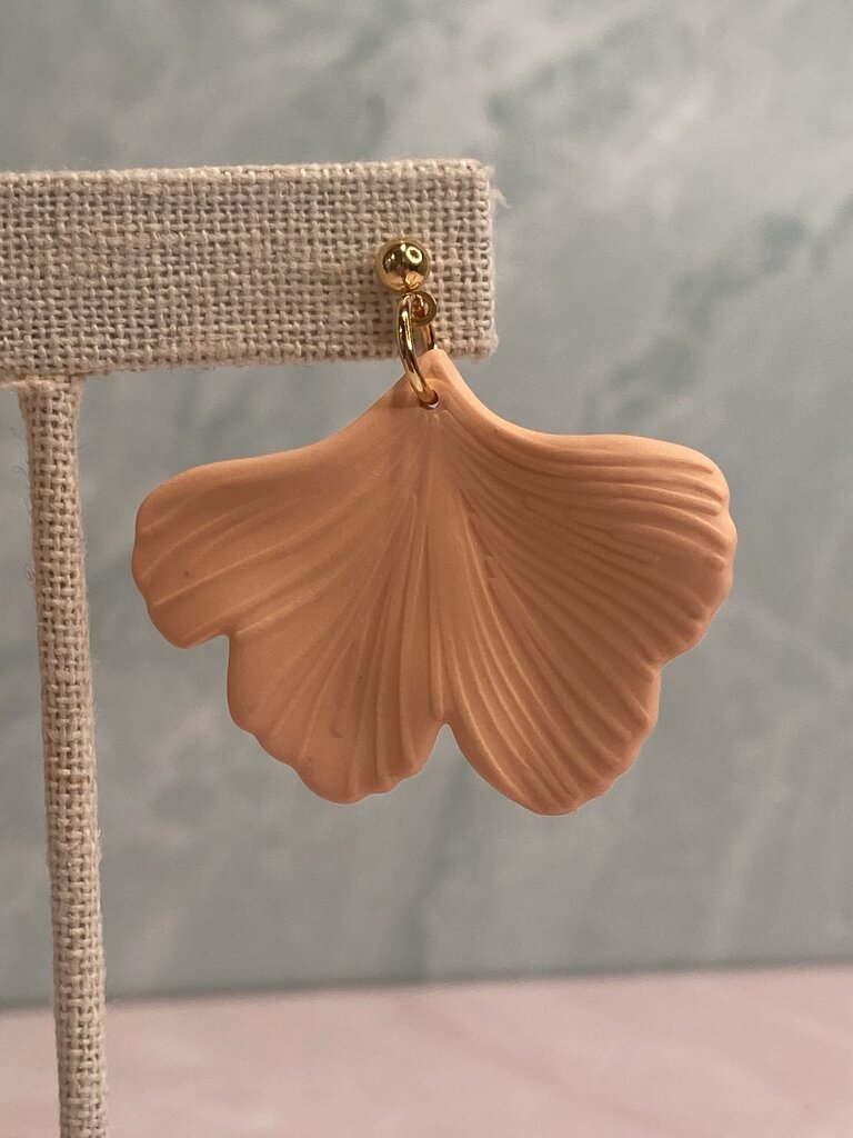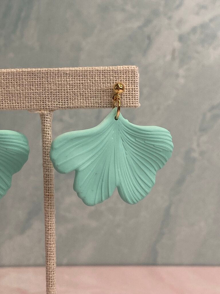 A pastel colored ginkgo on gold filled jump rings and ball posts!