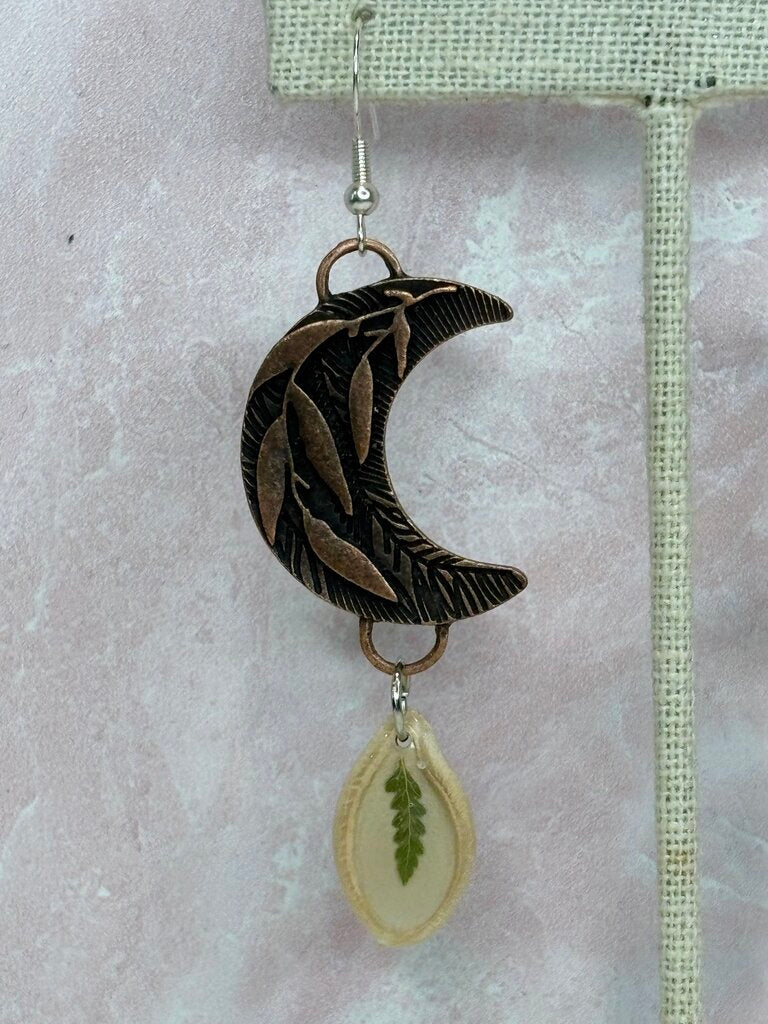 Charming earrings made with real pumpkin seeds and fern tips preserved in resin! Hung on fishhook posts.