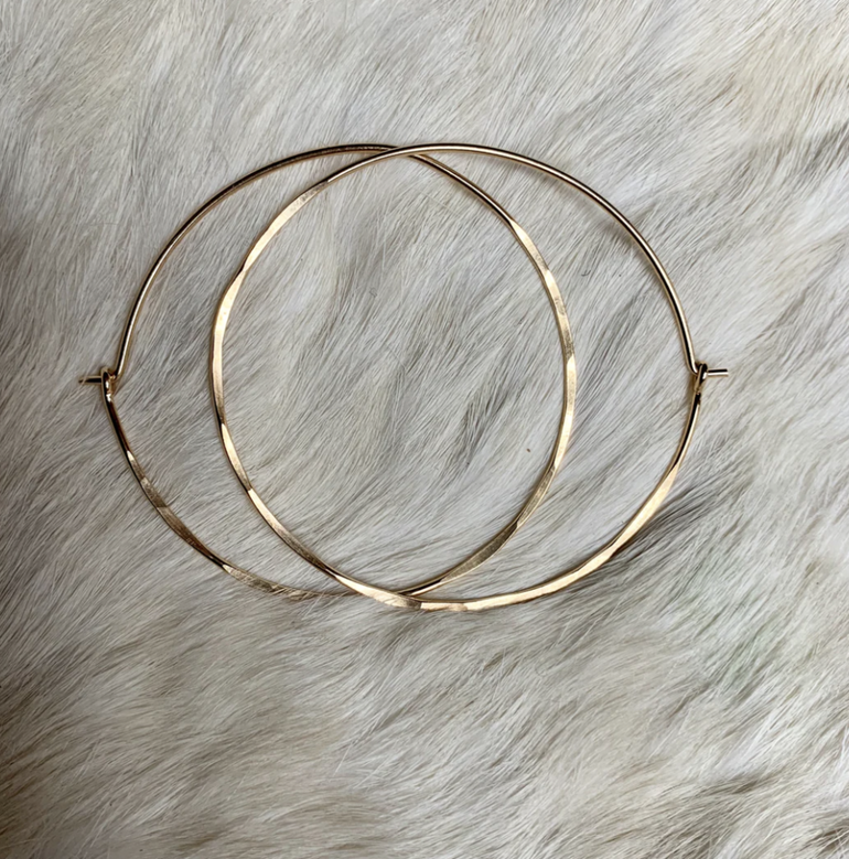 These are the best everyday hoops. They are the perfect size, super lightweight, and simple. Hand formed from 18g raw brass. These are the tiniest bit thicker than your average post earring. The slightly thicker wire helps the hoops to hold their shape over time.