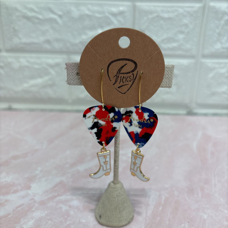 Tie Dye Pick & White Boot Charm Earrings