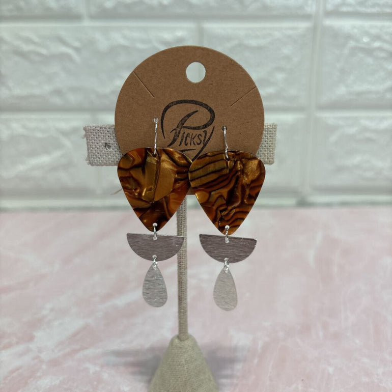 Tortoise Pick & Silver Turquoise Charm Earrings