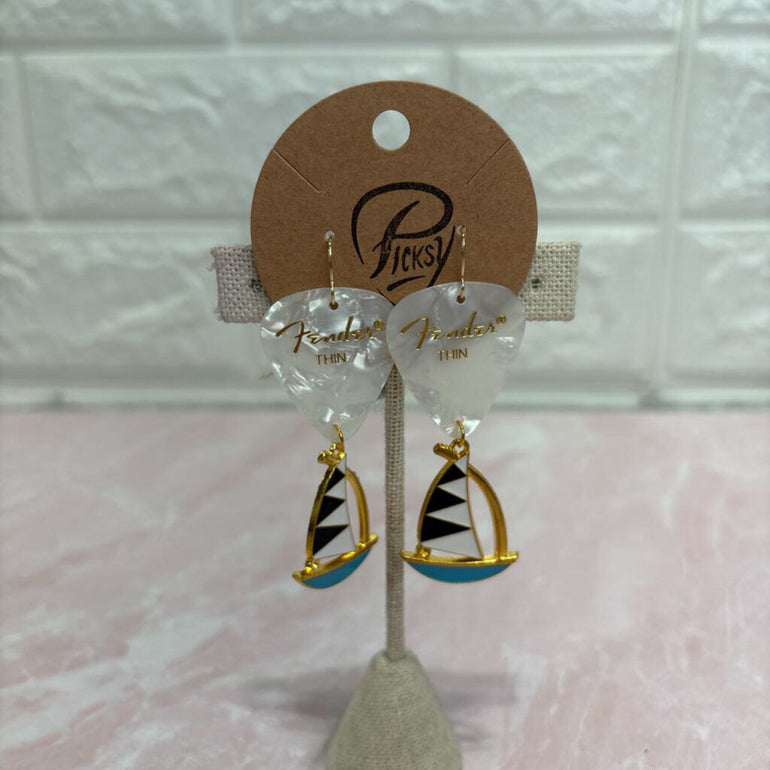 White Pick & Sailboat Charm Earrings