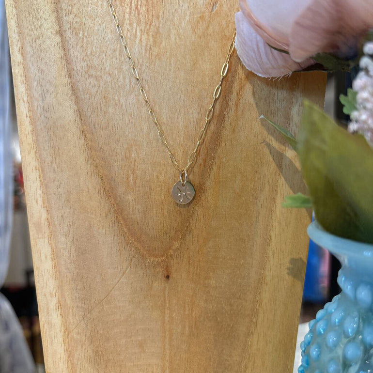 Sleek round coins in bright polished 14kt gold fill. Coin is 9mm round.
