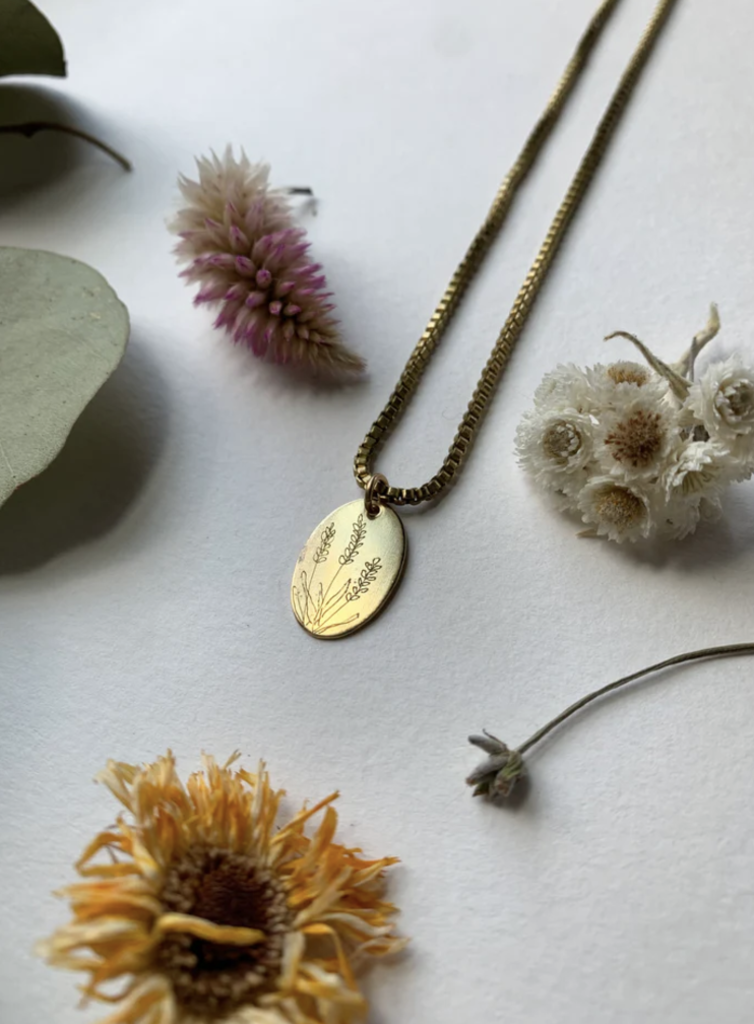 Floral Etched Necklace - Sunflower