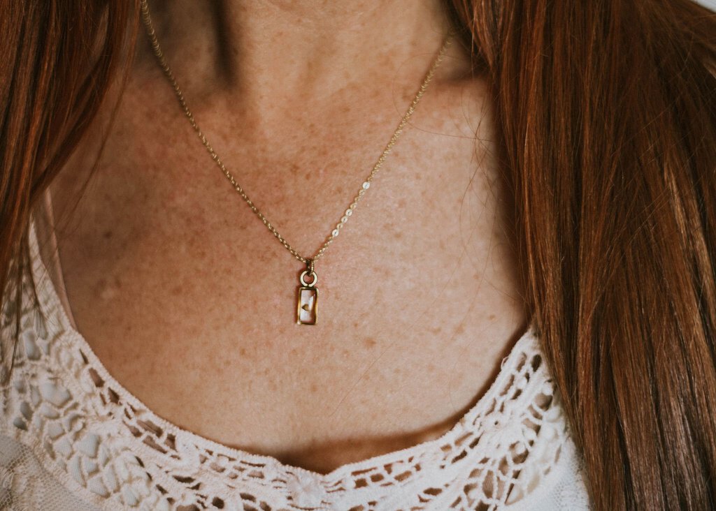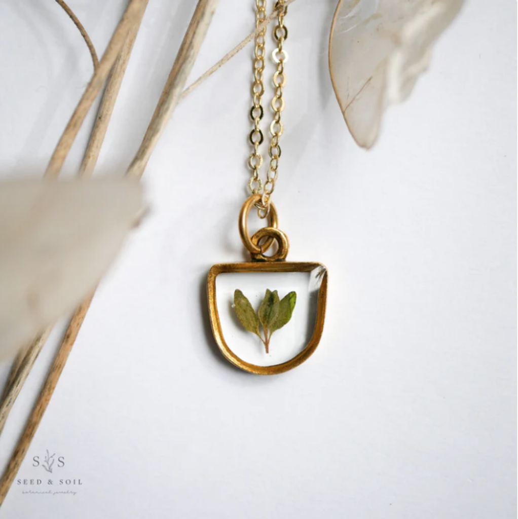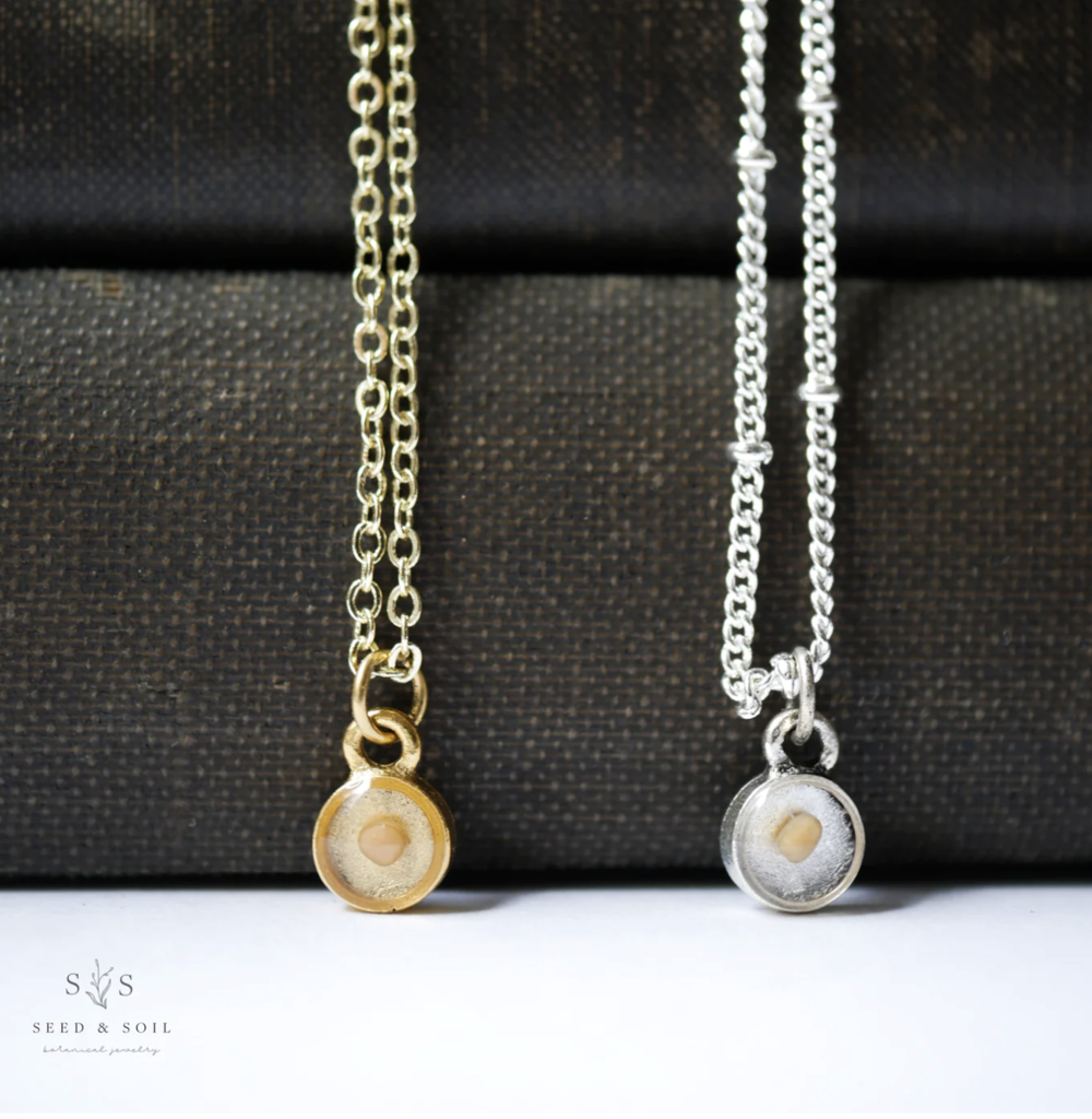 Tiny Rectangle Pendant Necklace - Mustard Seed