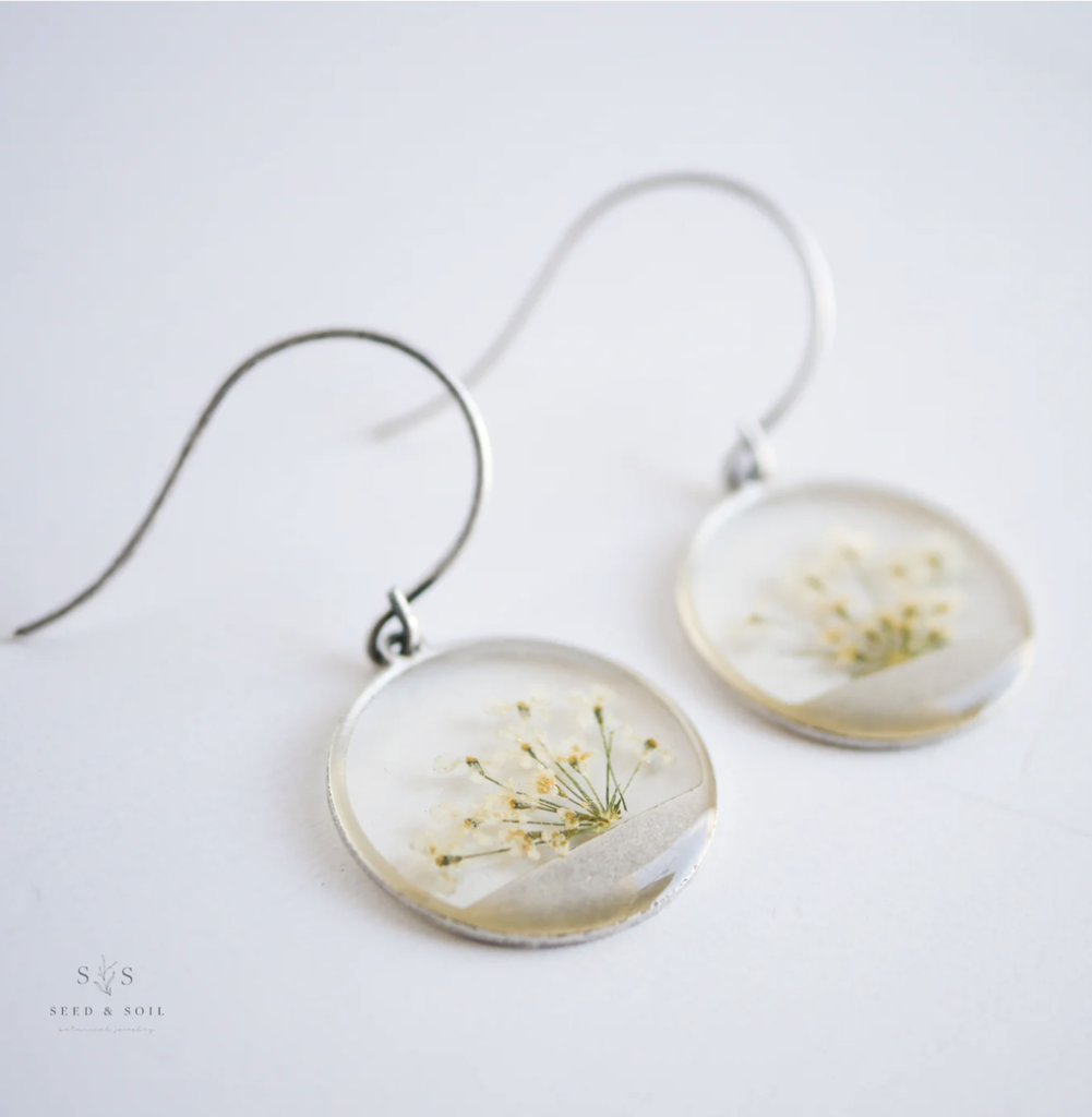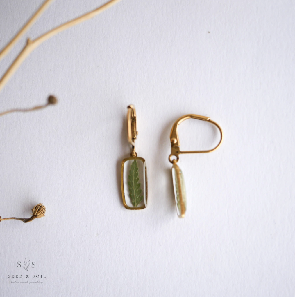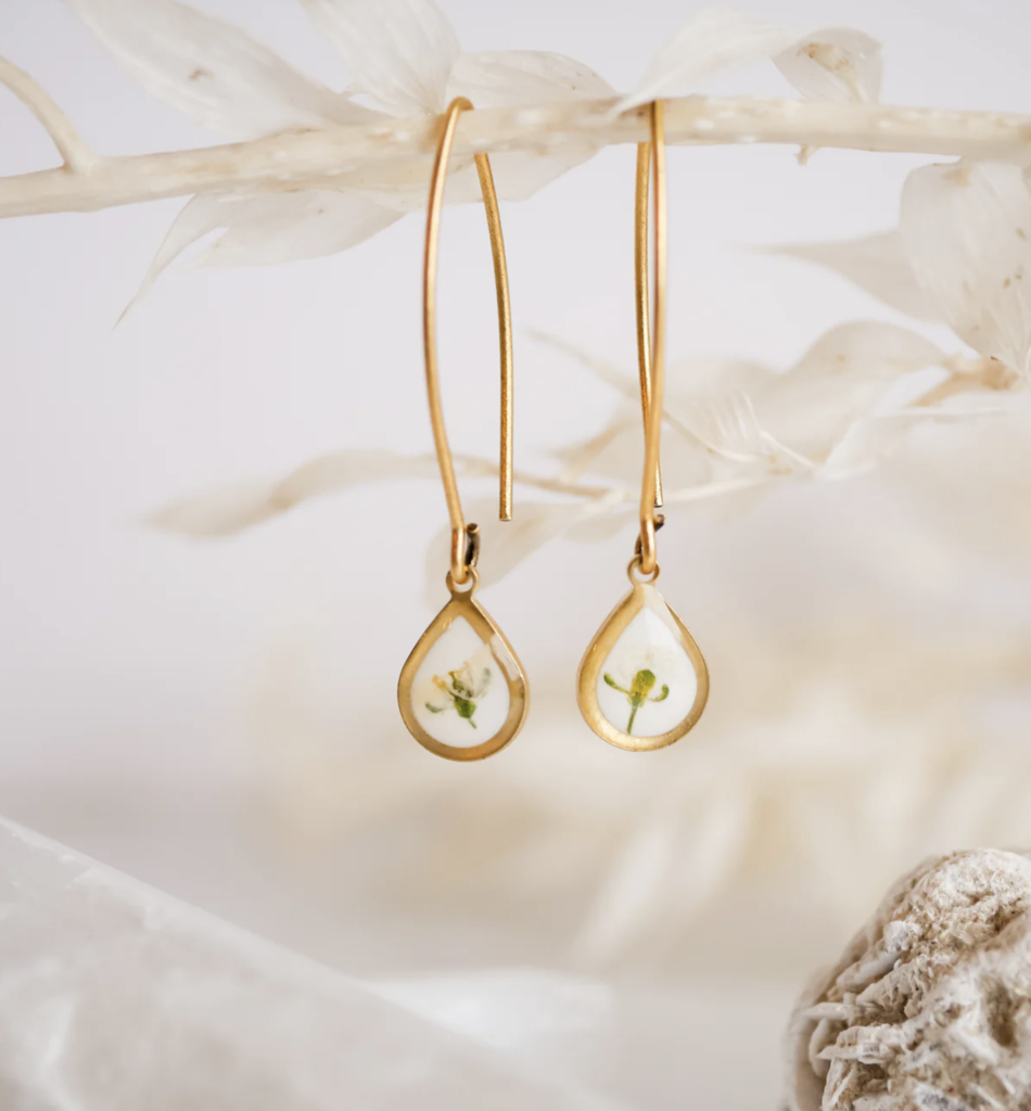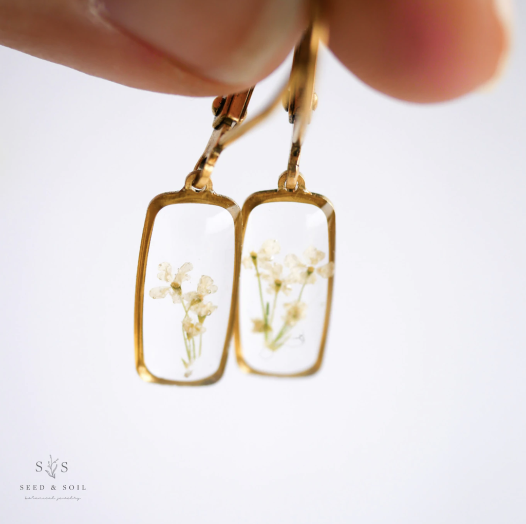 Tiny Rectangle Huggie Hoops - Queen Anne's Lace