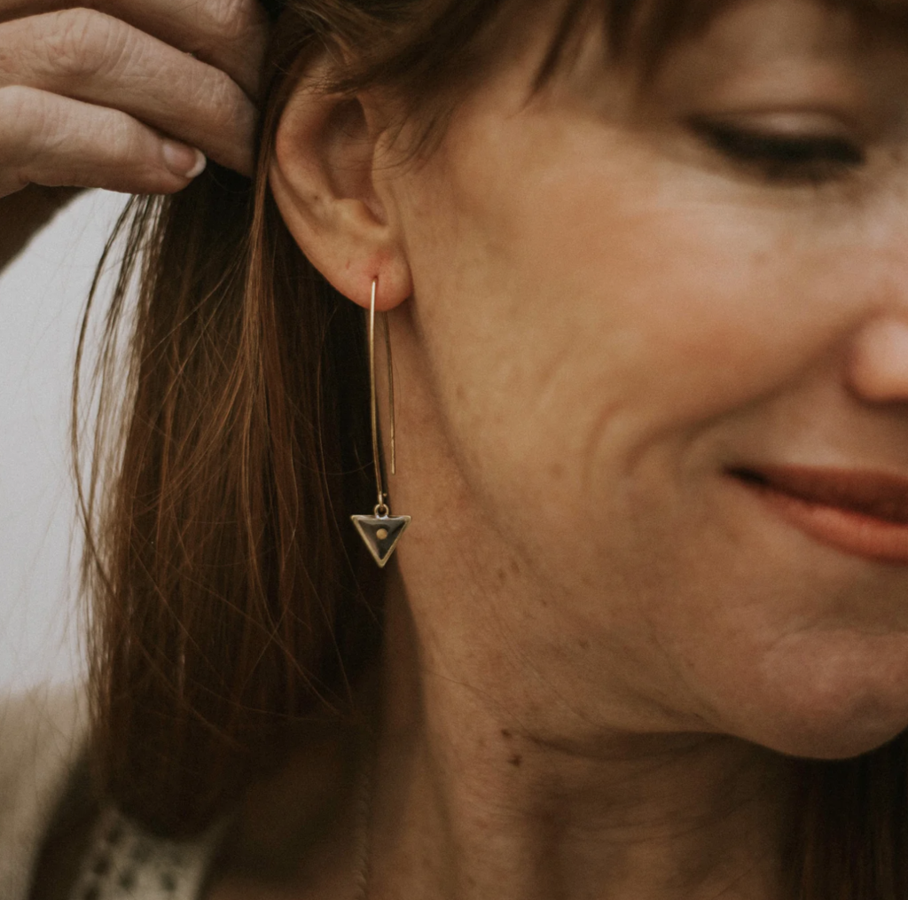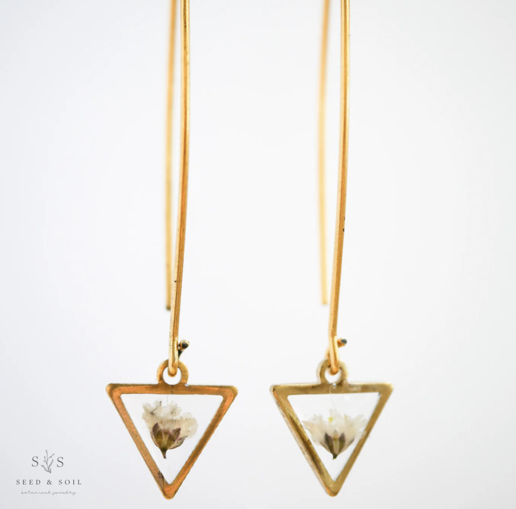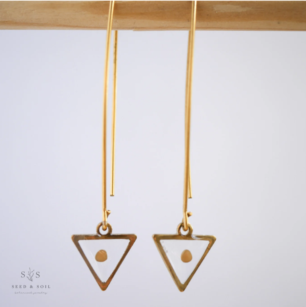 Tiny Rectangle Huggie Hoops - Queen Anne's Lace