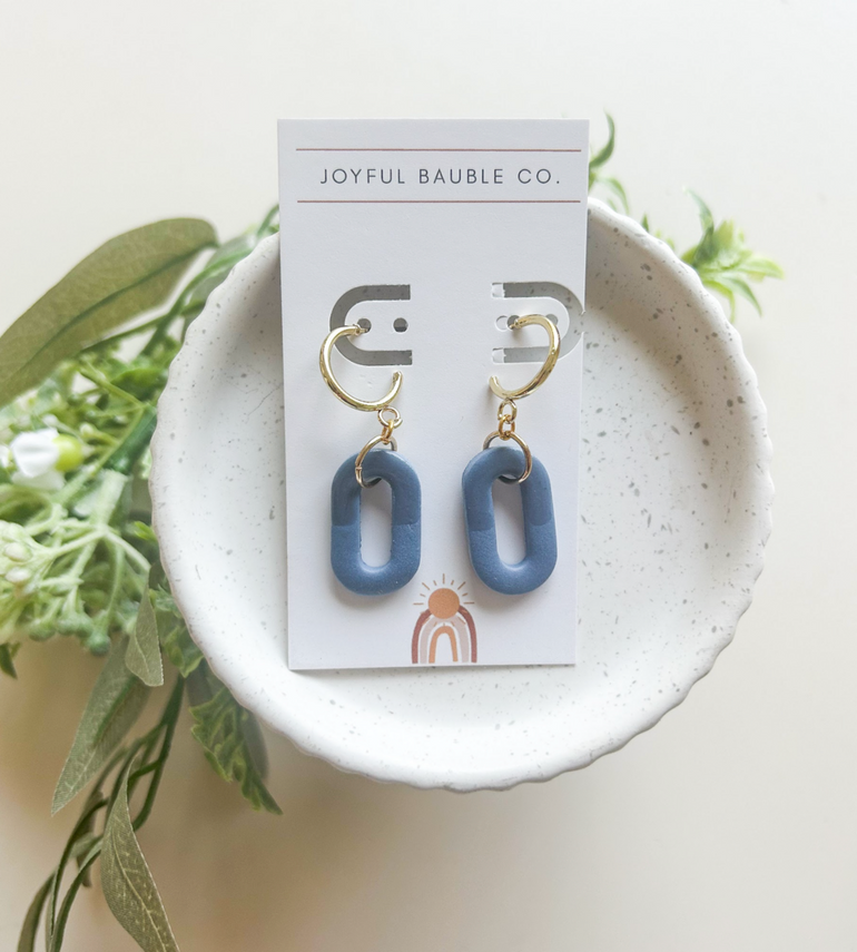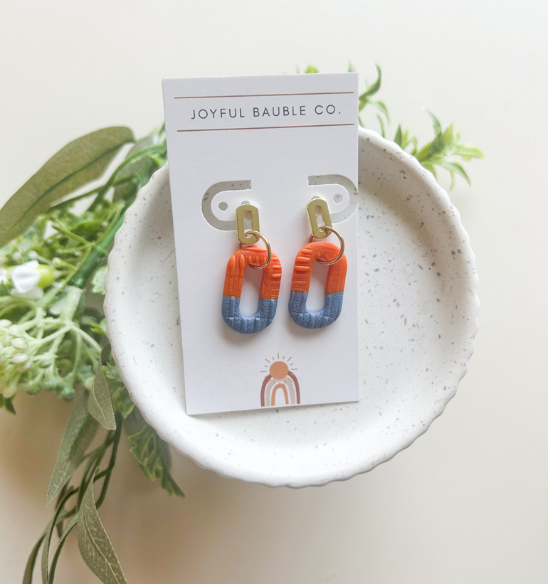 Polymer clay link earrings with brass metal accents.