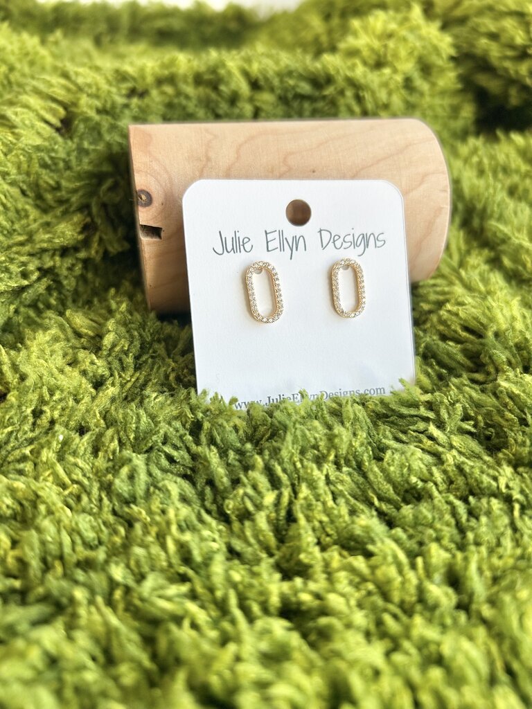 CZ Studded Open Oval Stud Earrings