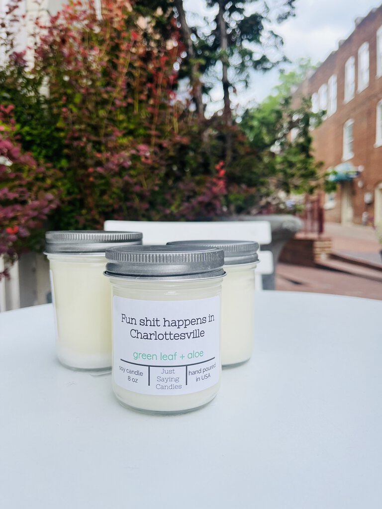 Fun Shit Happens in Charlottesville Candle - Green Leaf + Aloe