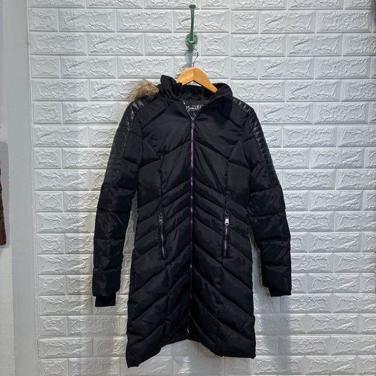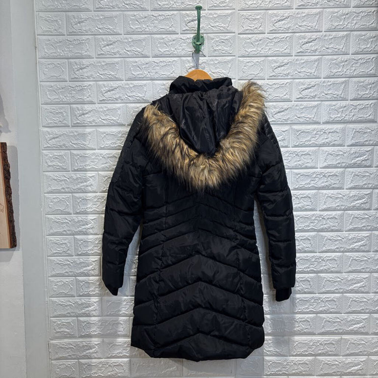 Midi Puffer Parka Jacket w/ Faux Fur Hood
