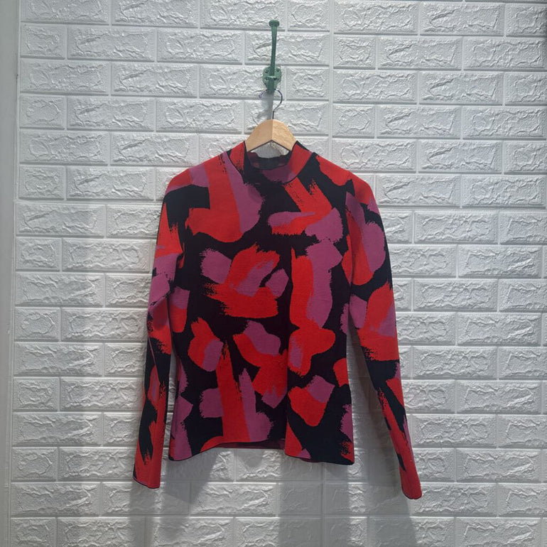 Patterned High Neck Top