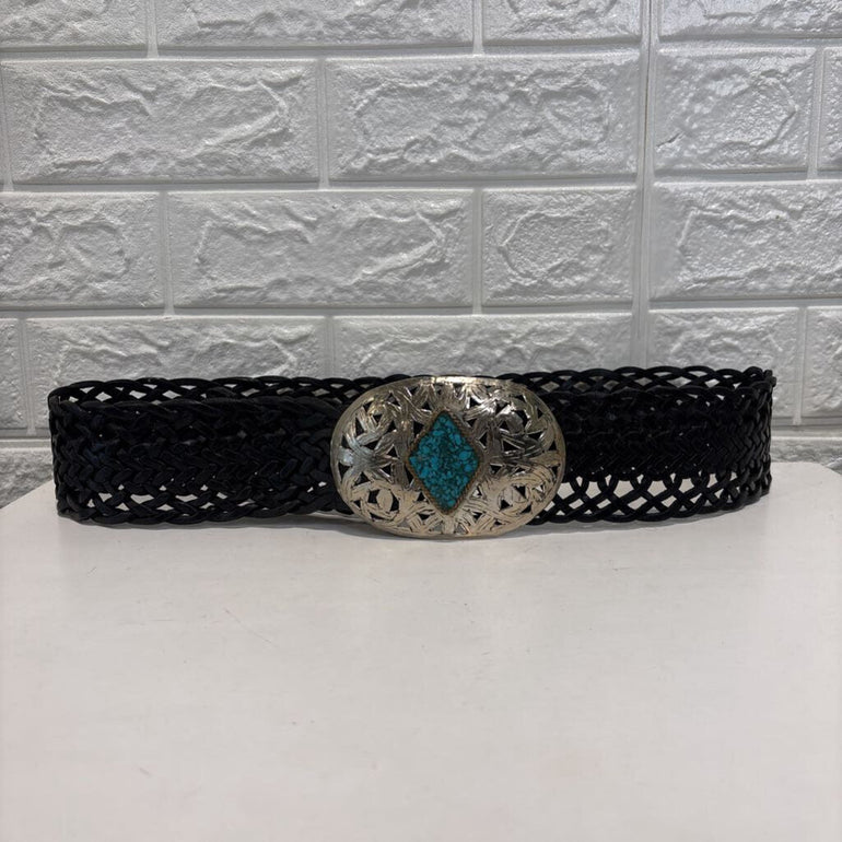 Vintage Braided Leather Big Buckle Belt