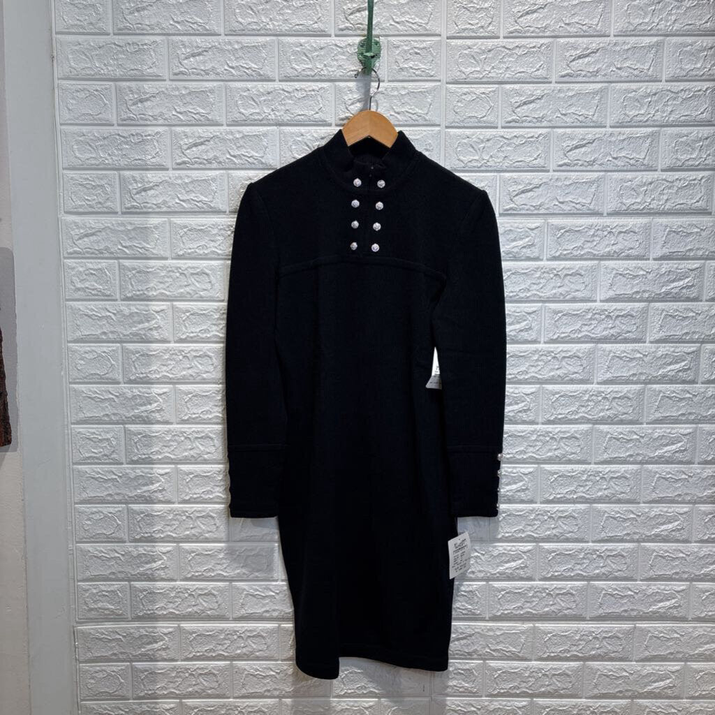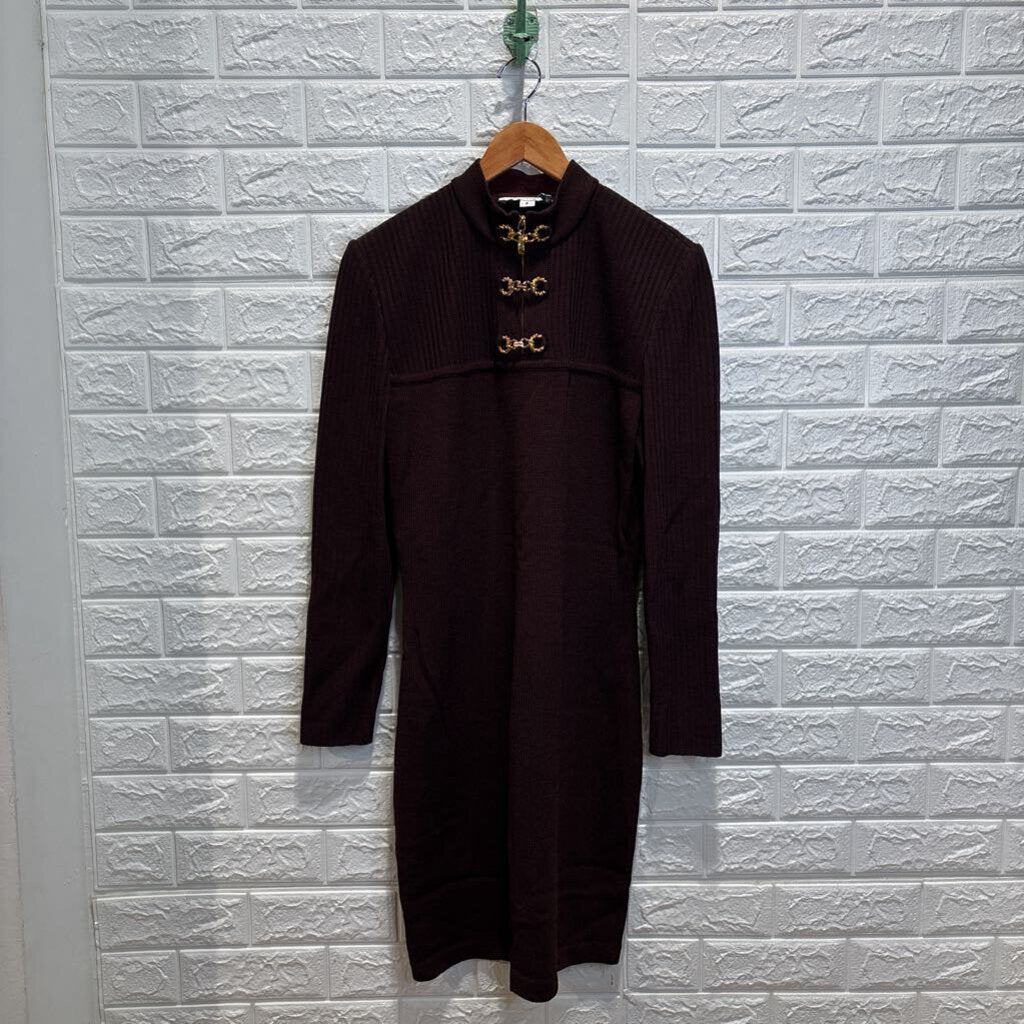 Y2K Ribbed Sleeve Chain Clasp Sweater Dress