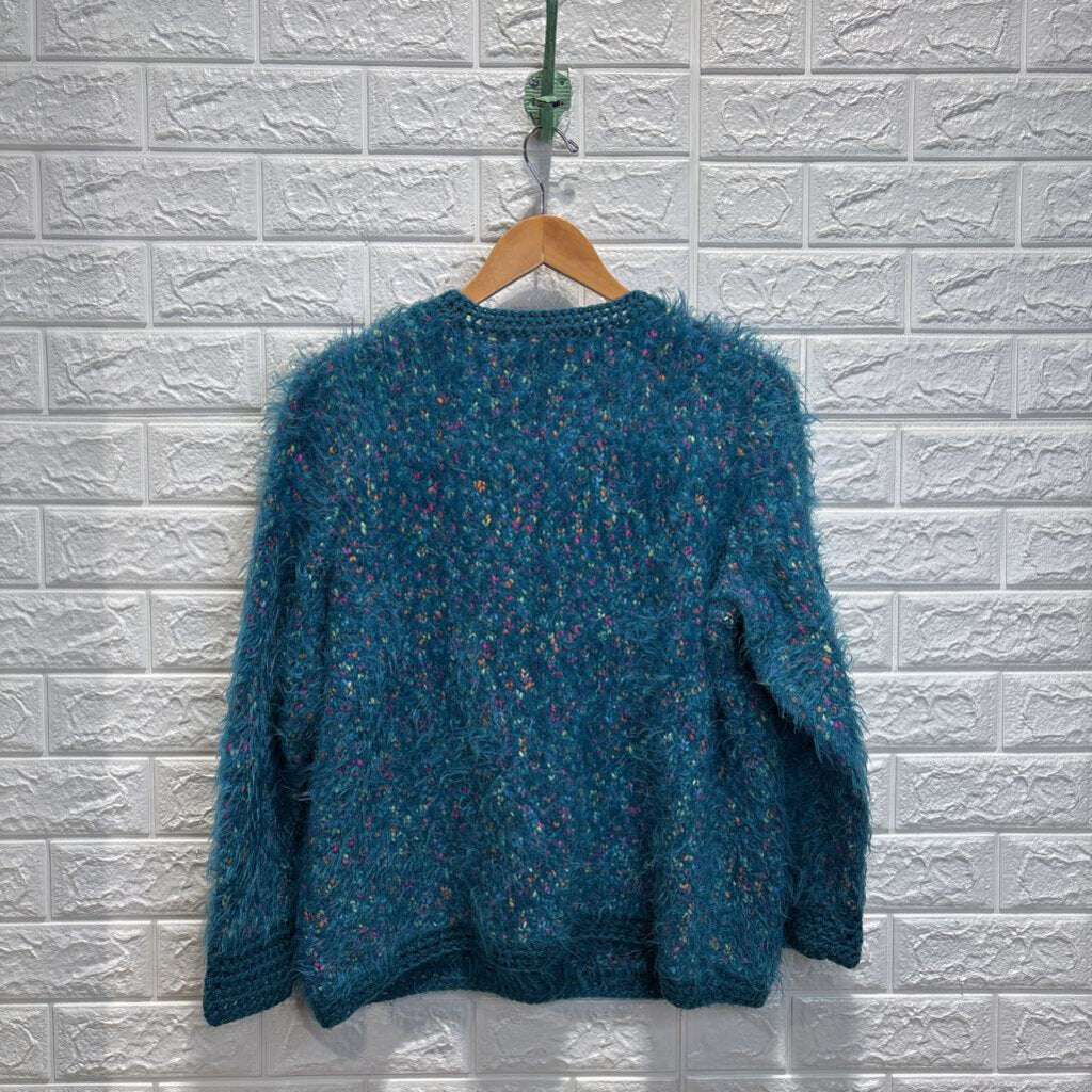 Silk And Cotton Colorful Fuzzy Knit Cardigan