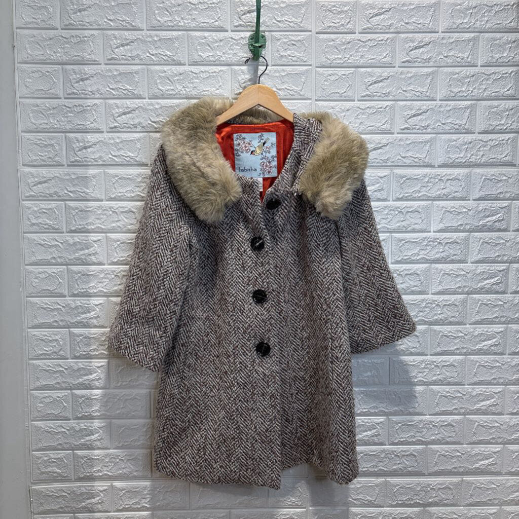 Wool Blend Tweed Coat w/ Removable Faux Fur Collar