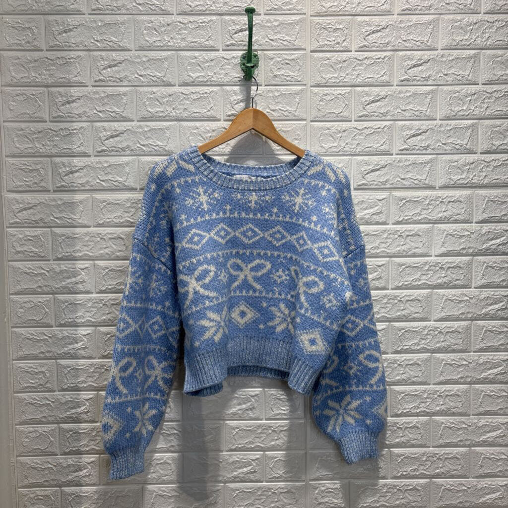 Cropped Bow Pattern Knit Sweater