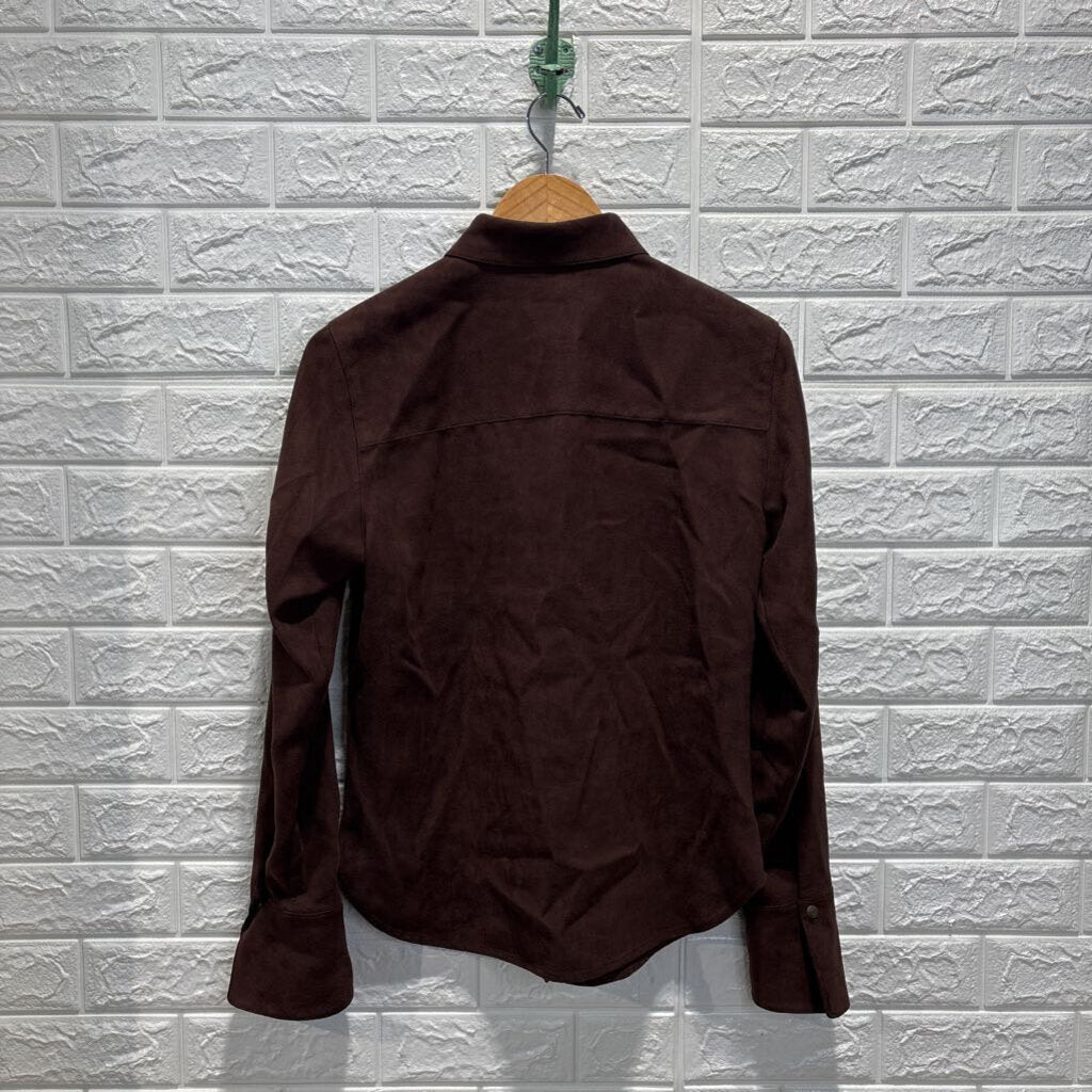 Y2K Faux Suede Snap Button Shirt