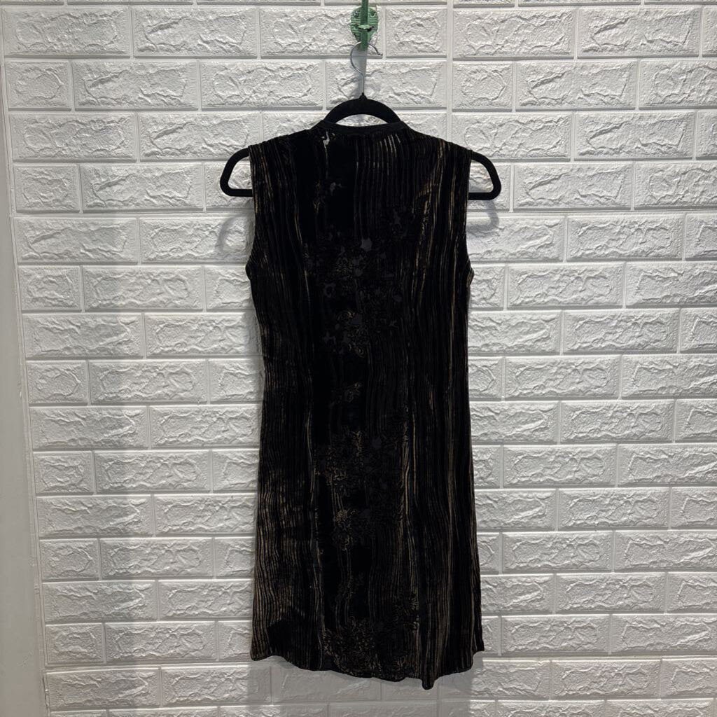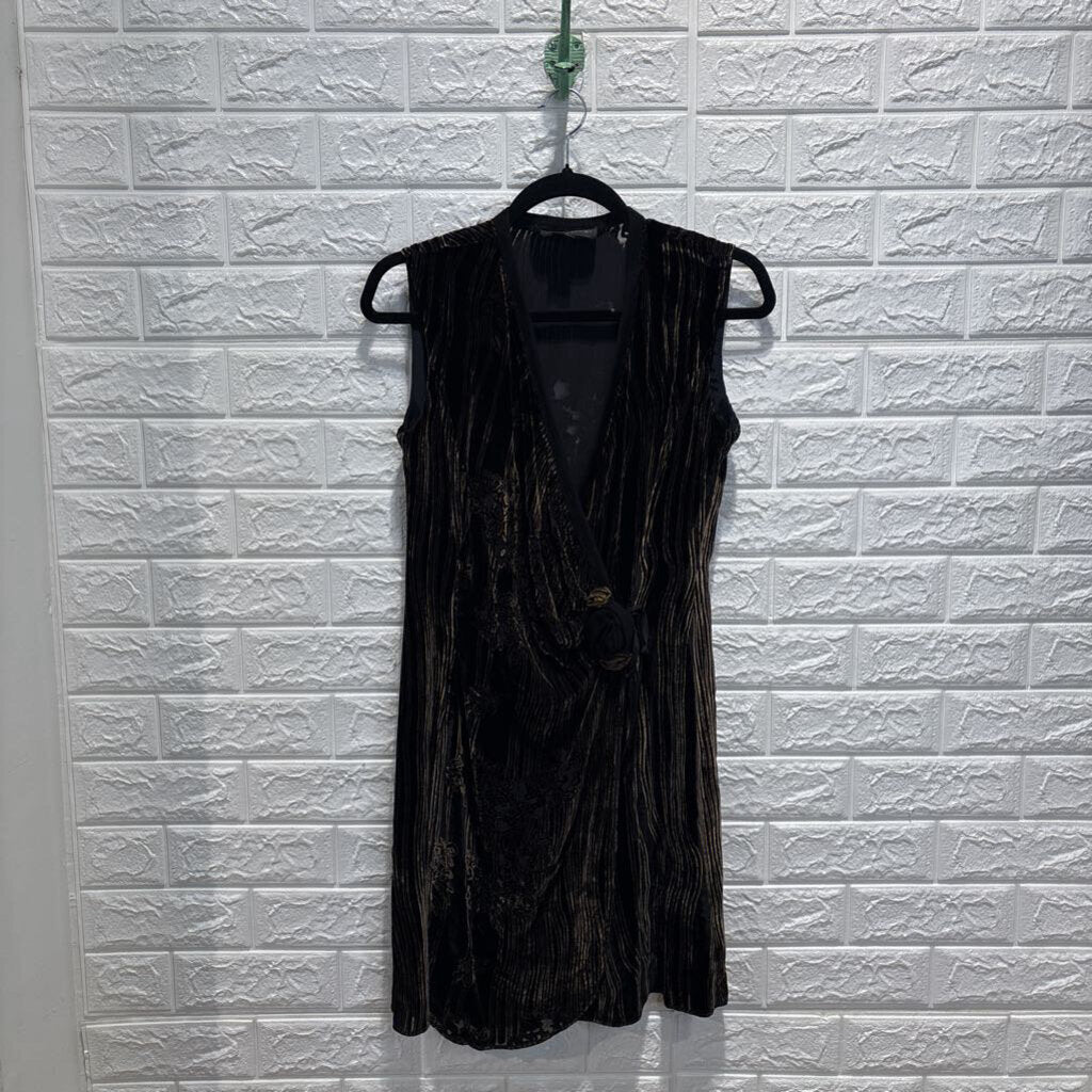 Vintage Patterned Velvet Sleeveless Wrap Dress