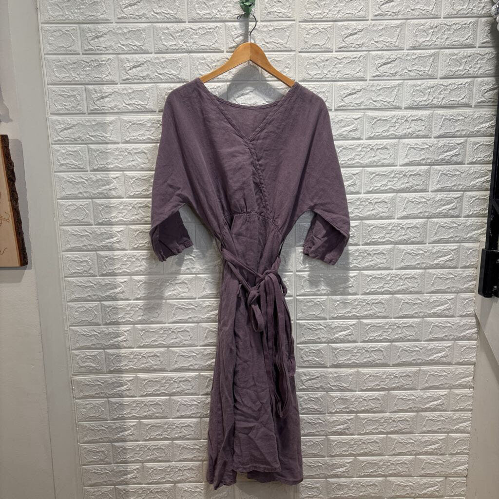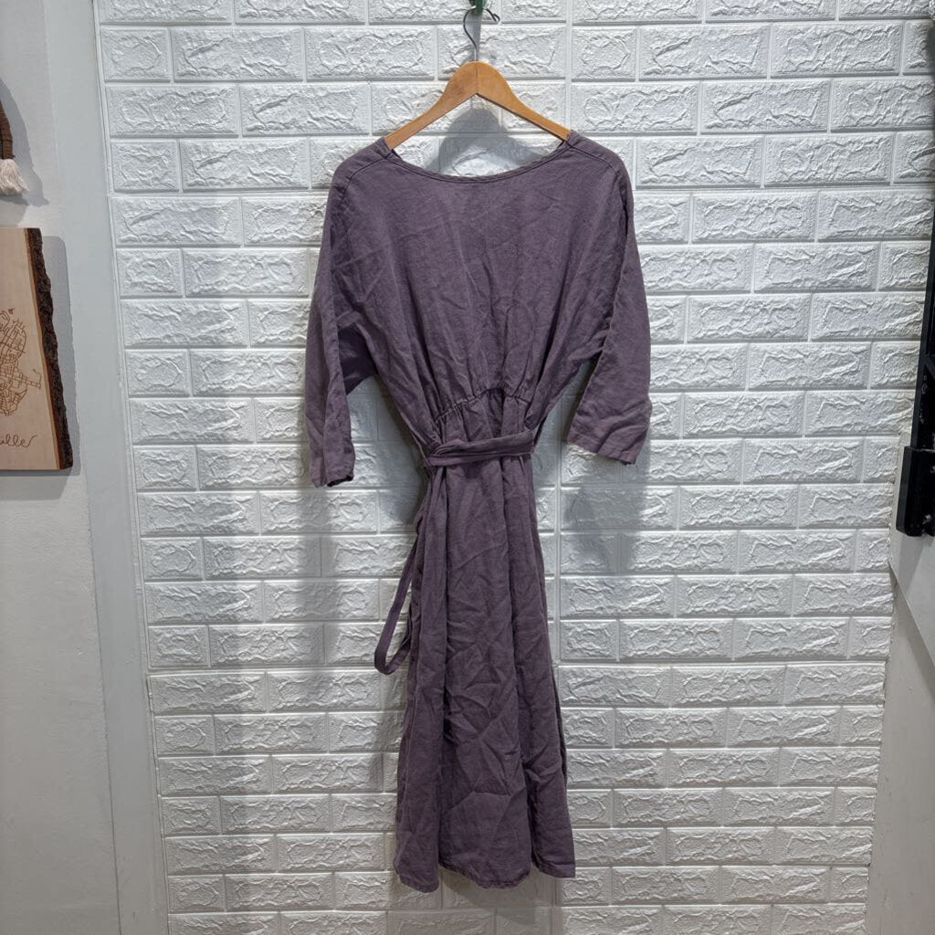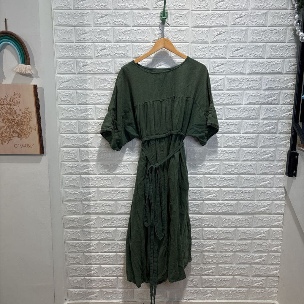 Belted Linen Short Sleeve Dress