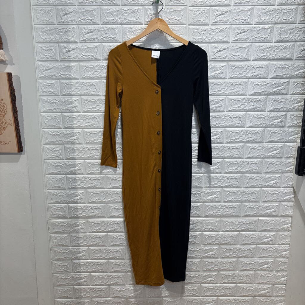 Bicolor Long Sleeve Button Dress NWT
