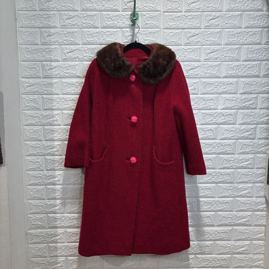Vintage Trimmed Collar Tweed Coat