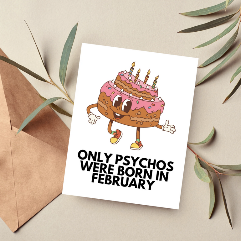 Snarky February Birthday Card - "Only Psychos Were Born in February" - Funny Birthday Greeting Card