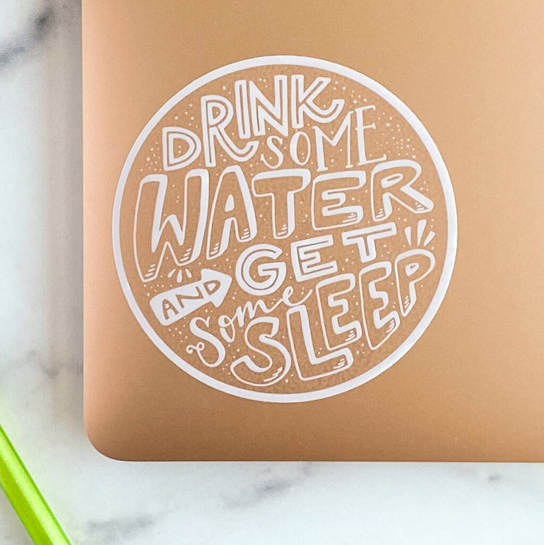 Get Some Sleep WHITE ON CLEAR BACKGROUND // Our scratch resistant vinyl stickers are durable, waterproof, and dishwasher safe. Perfect for your favorite water bottle, laptop, windshield, or tablet case! This original design was hand drawn with pencil and pen, and all Billie Claire products are printed in the US / designed and assembled in Richmond, Virginia.