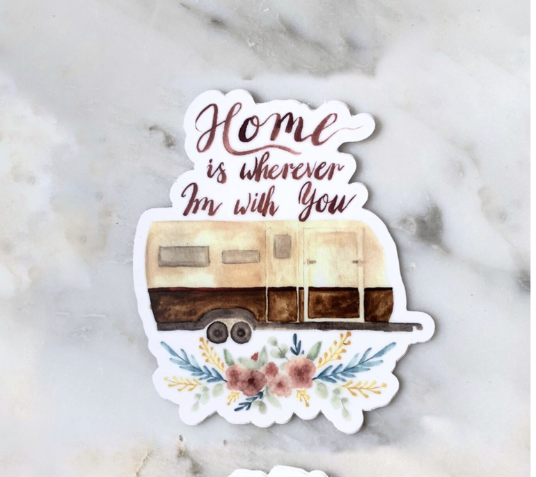 The "Home is Wherever I'm with You" vinyl sticker features a charming illustration of a cute camper surrounded by blooming flowers. The warm and inviting design captures the essence of what it means to have a place of comfort and safety. Whether you're on the road or simply in need of a reminder of what truly matters, this sticker is the perfect way to show that your home is wherever you are with those you love. Made of durable vinyl, this sticker is easy to apply to any smooth surface and is made to last. It's a beautiful and heartwarming decoration for your car, laptop, water bottle or anything else where you need this reminder.