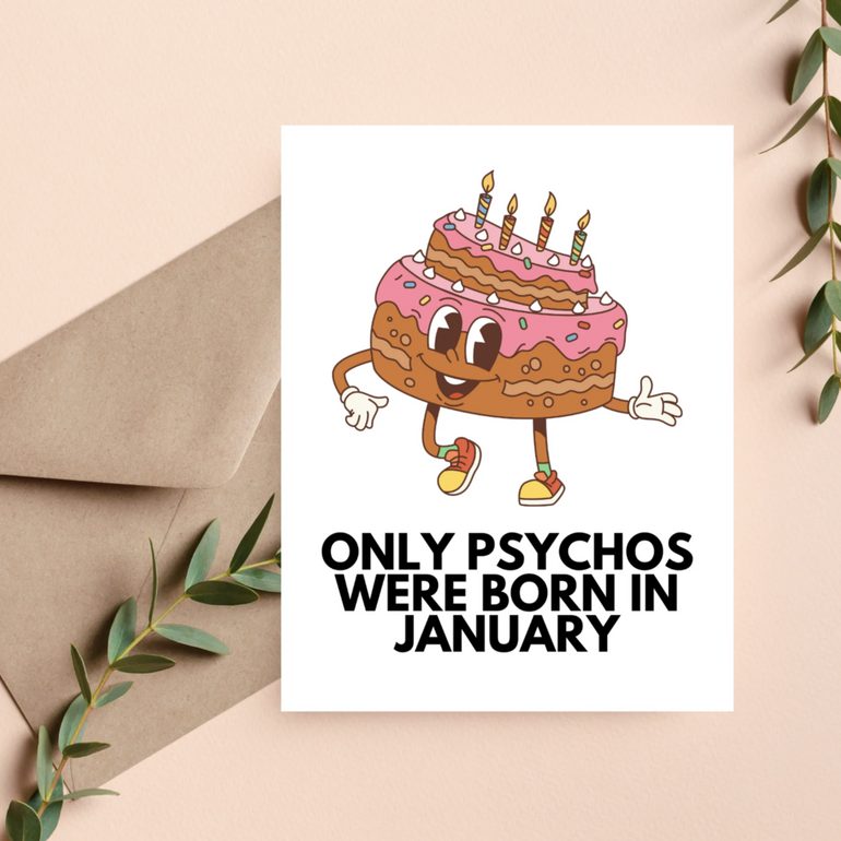 🌀 Know someone with a January birthday who’s just a little unhinged? Celebrate their chaos with this hilariously snarky birthday card that’s perfect for the psycho in your life. Whether it's a friend, sibling, or coworker, they'll laugh (maniacally) at this one-of-a-kind greeting.