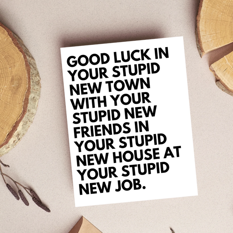 "Good Luck in Your Stupid New Town" Snarky Moving Card 🚚
