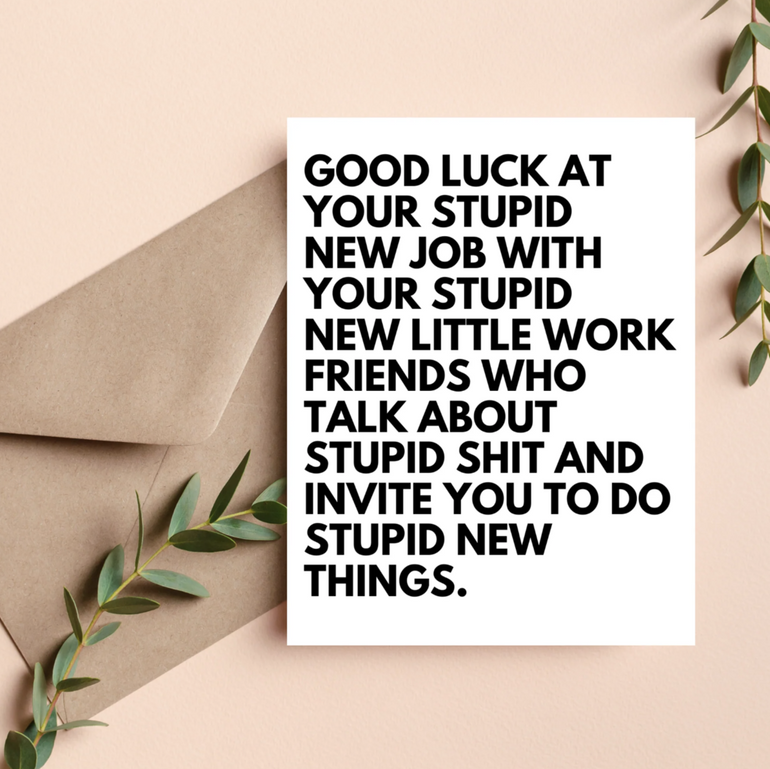 "Good Luck at Your Stupid New Job" Snarky Farewell Card - Perfect for Coworkers and Bosses