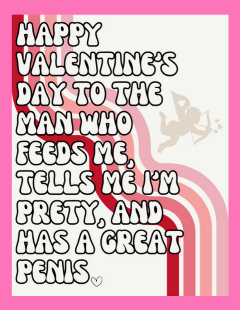When “Happy Valentine's” doesn’t quite cut it. This card is for the man who feeds you, tells you you’re pretty, and brings ahem certain other qualities to the table. Snarky, romantic, and 100% unforgettable.