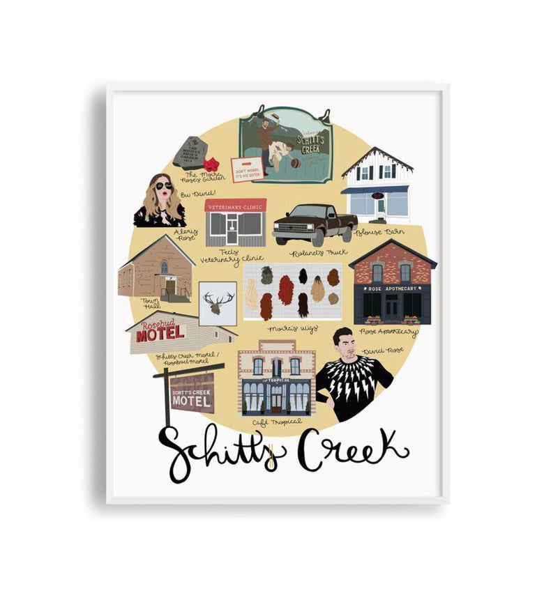With such tiny details of course the bigger the better but do you have a crazed Friends fan in your life? A greeting card of Schitt's Creek edition would be perfect to send them! The illustration includes original illustrations of the David Rose, Alexis Rose' "Ew David!", Roland's Truck, the Rosebud Motel, Blouse Barn, Town Hall Moira's Wigs, Café Tropical, Rose Apothecary, Ted's Veterinary Clinic, The Moira Rose's Garden, and the sign coming into the town.