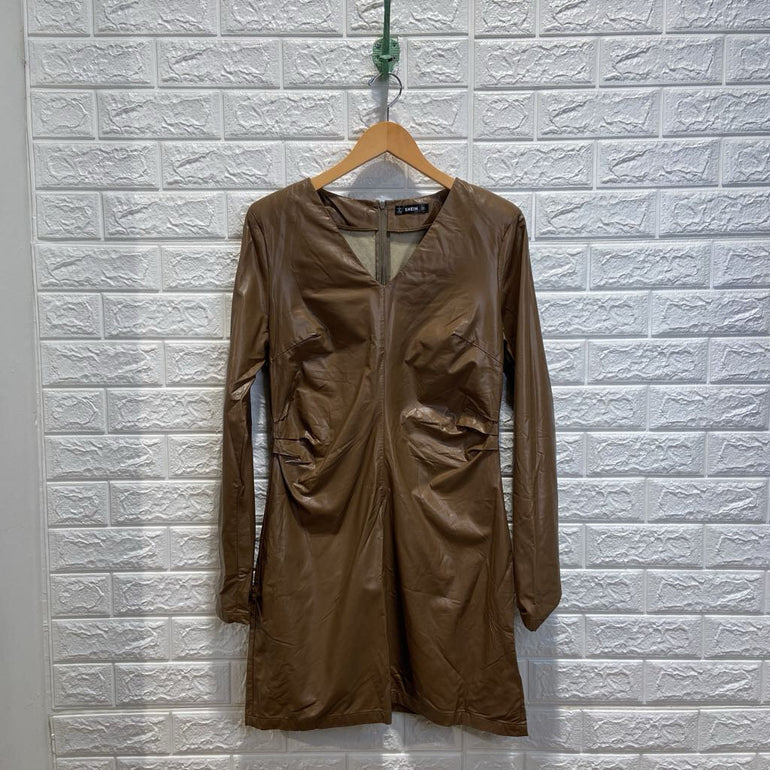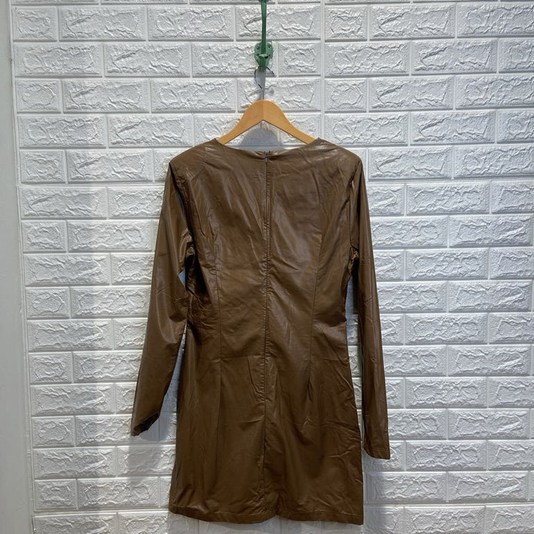 Pleather Vneck Long Sleeve Dress