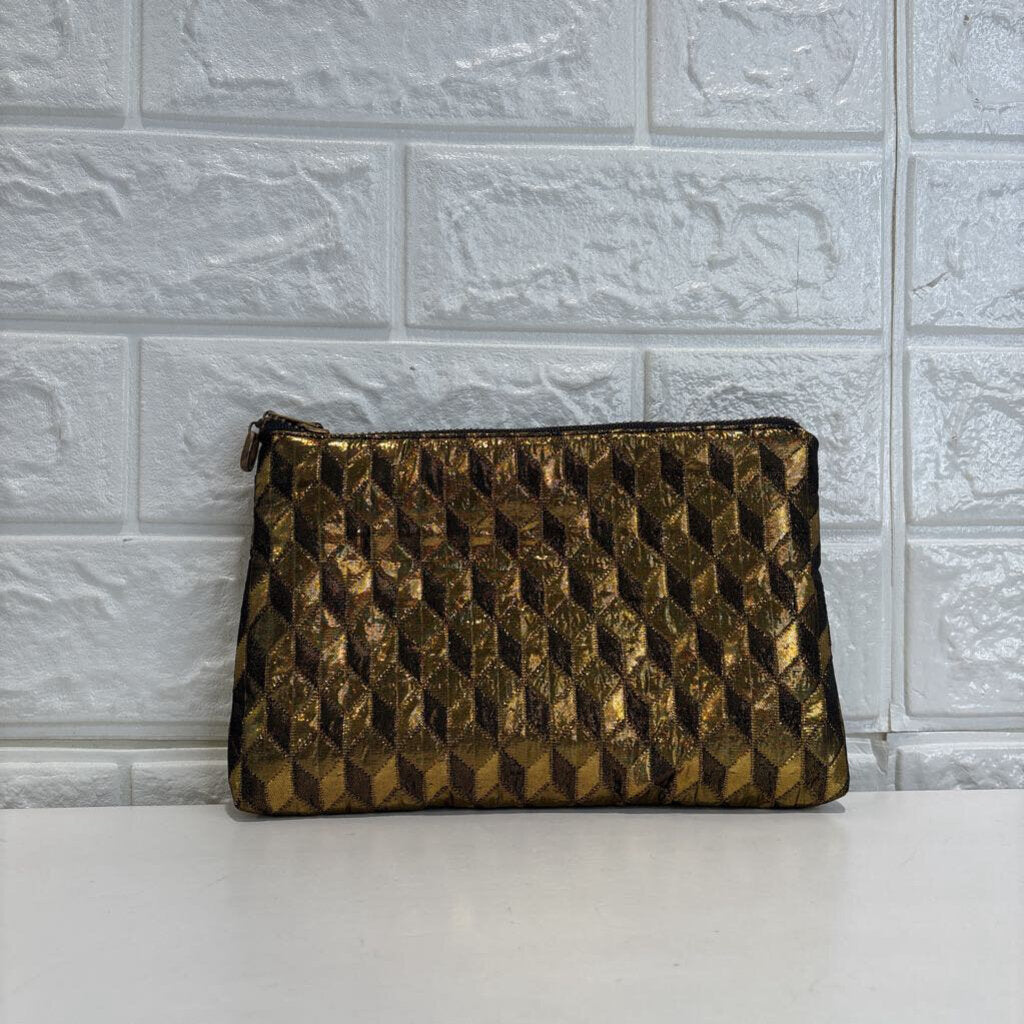 Golden Cubes Brocade Pouch