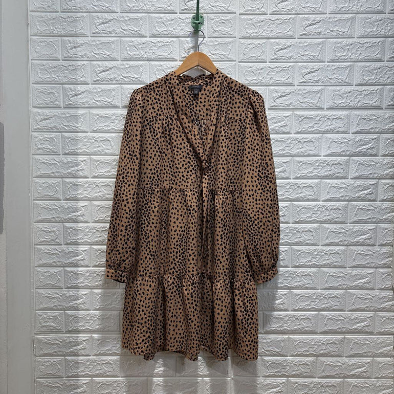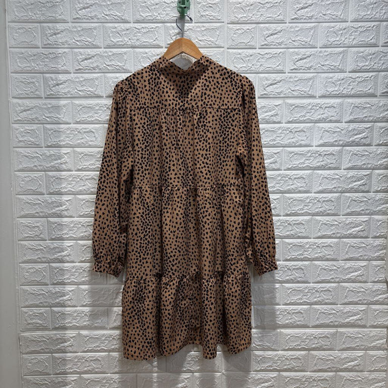 Cheetah Print Long Sleeve Tiered Dress