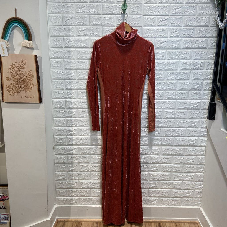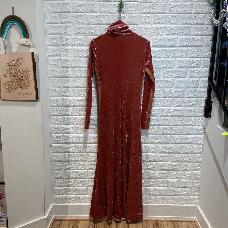 Mock Neck Long Sleeve Crushed Velvet Maxi Dress