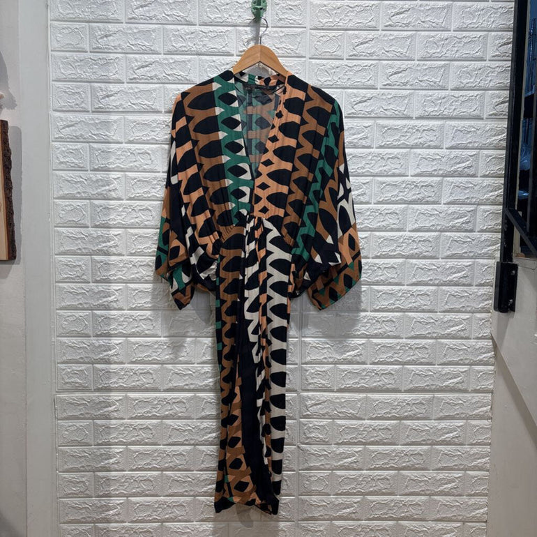 Patterned Batwing Midi Dress