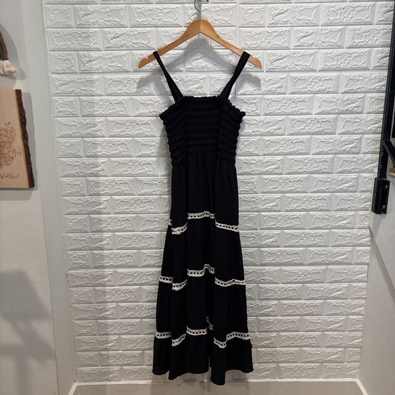 Sleeveless Shirred Top Tiered Midi Dress